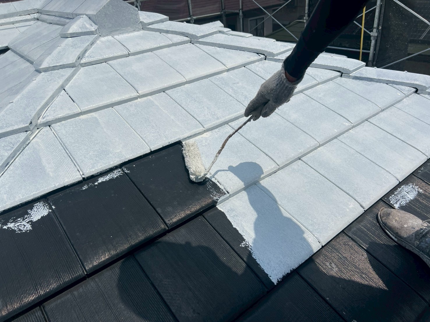 外壁の下塗りを終えたら、屋根の下塗りに入りました。