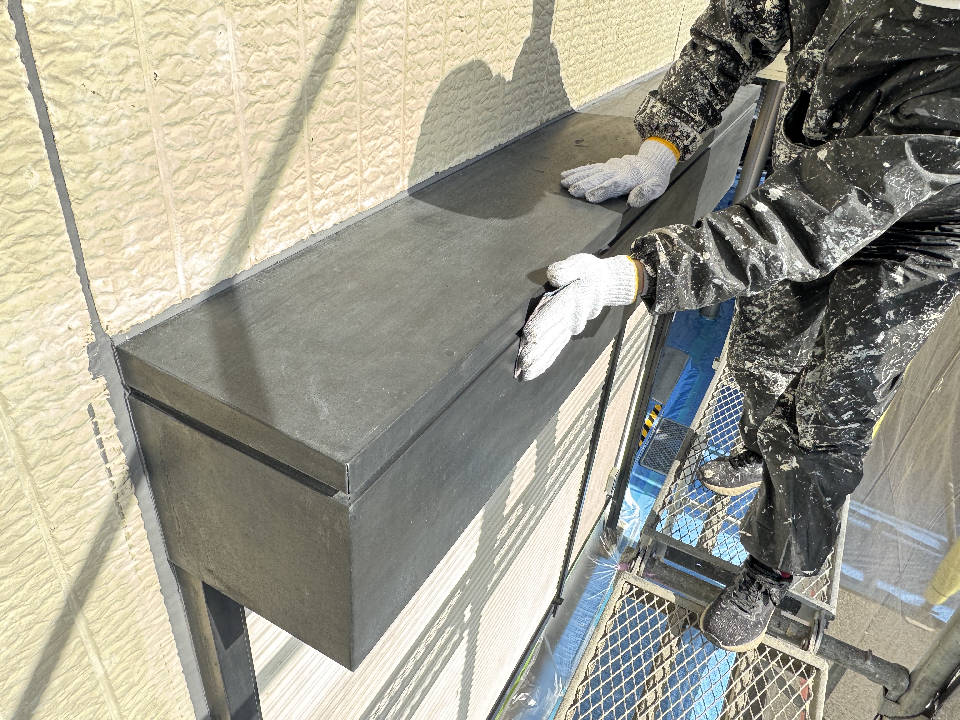 今日は、先日から塗り替え工事をさせていただいている熊本市の住宅で、養生と鉄部の錆止めを行いました!
