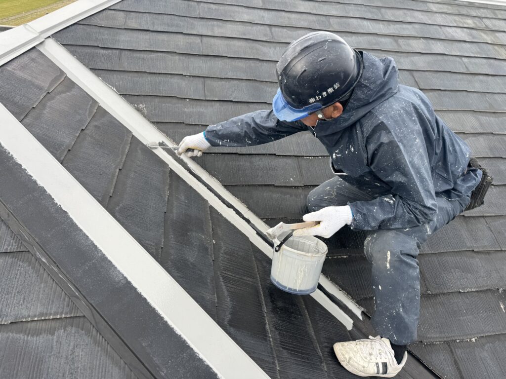 屋根板金もしっかり塗っていきます!