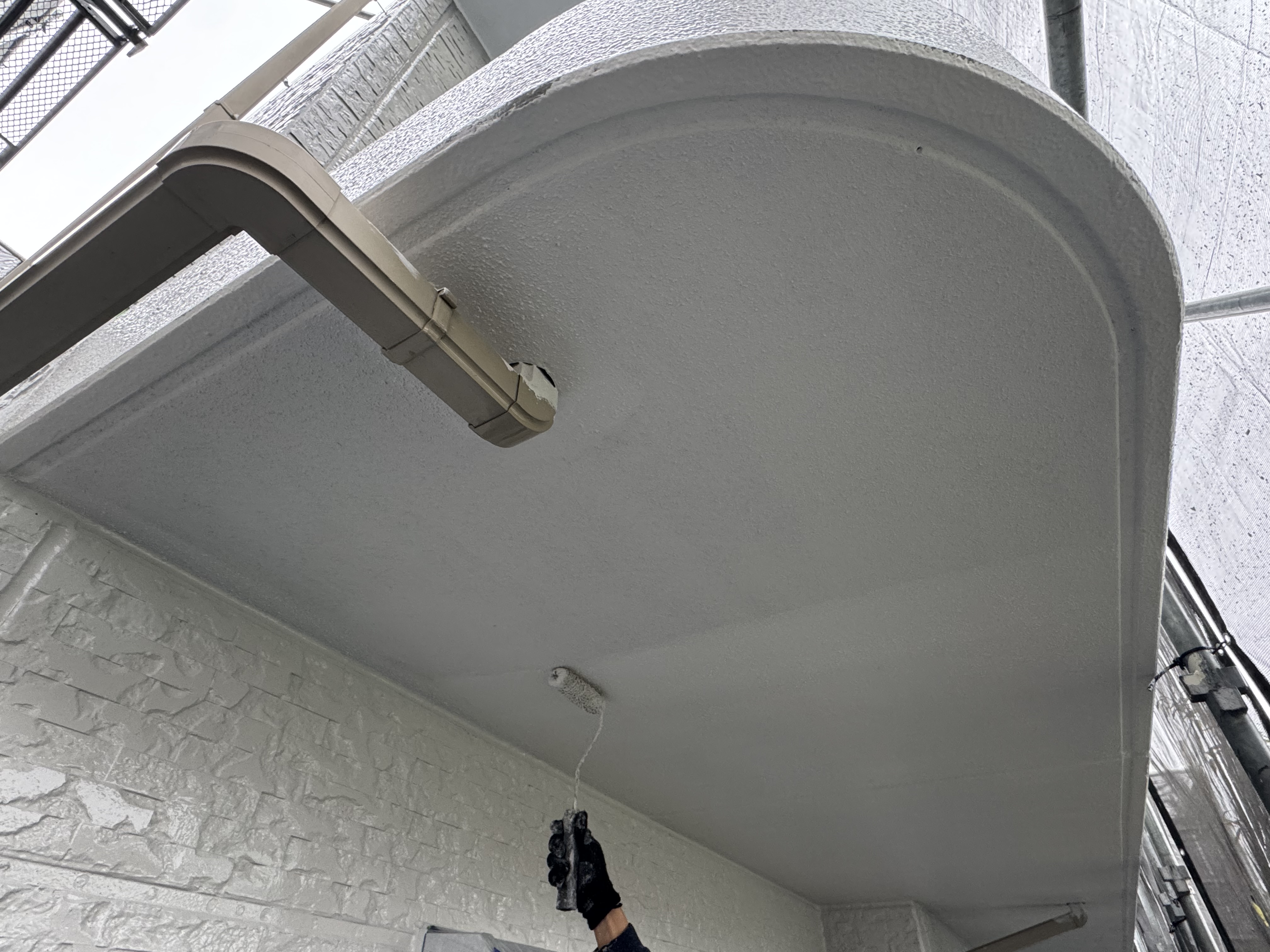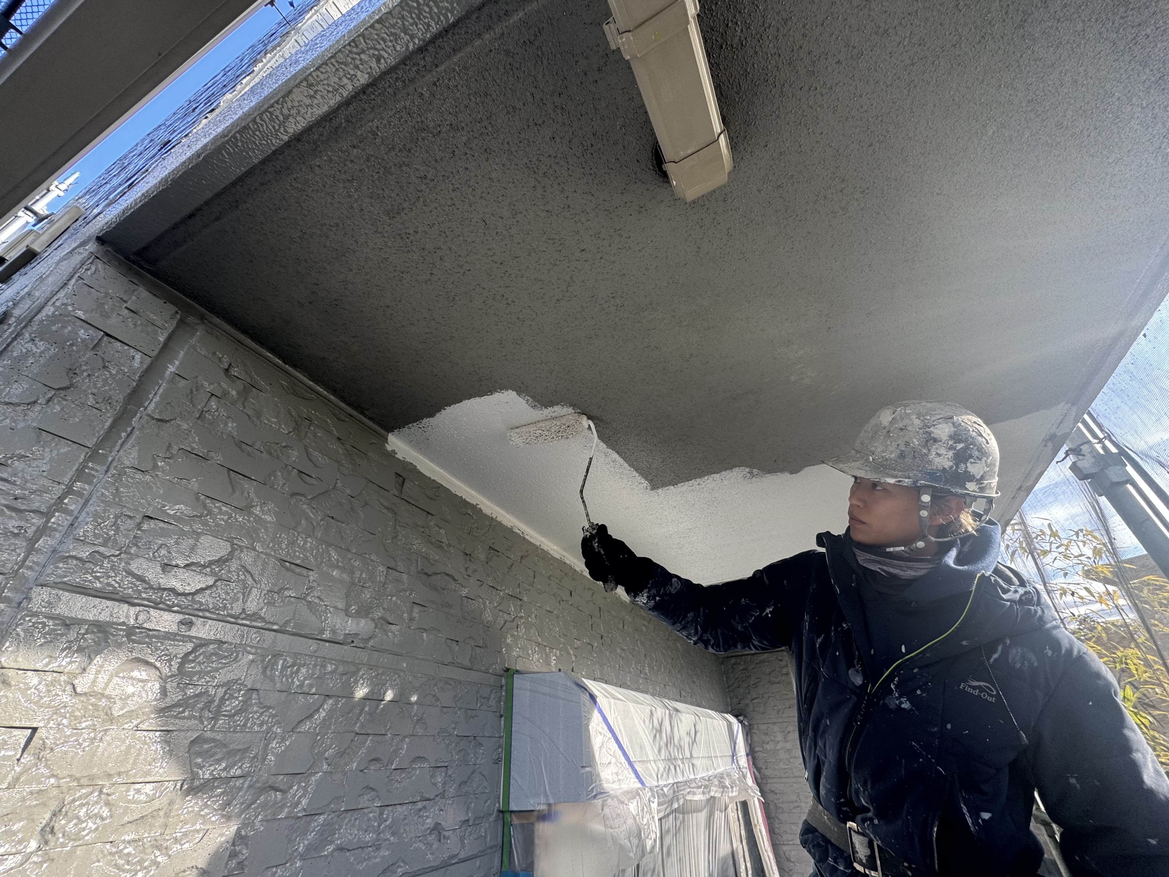 軒天は湿気が滞留しやすい場所ですので、防カビ性・透湿性に優れた日本ペイントのケンエースGⅡを使用しています♪