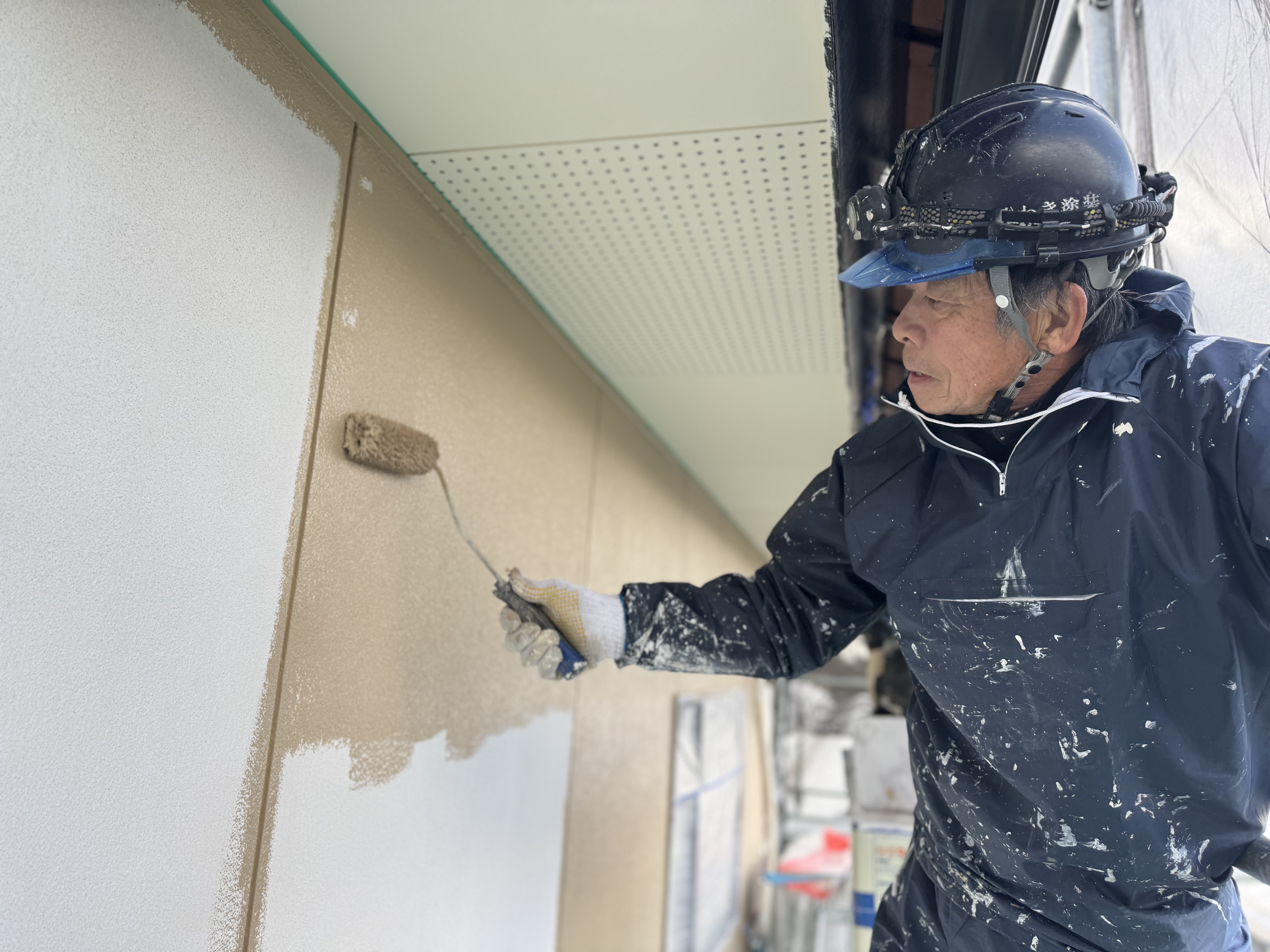 外壁塗装は「下塗り → 中塗り → 上塗り」と3工程で仕上げるのが基本です。