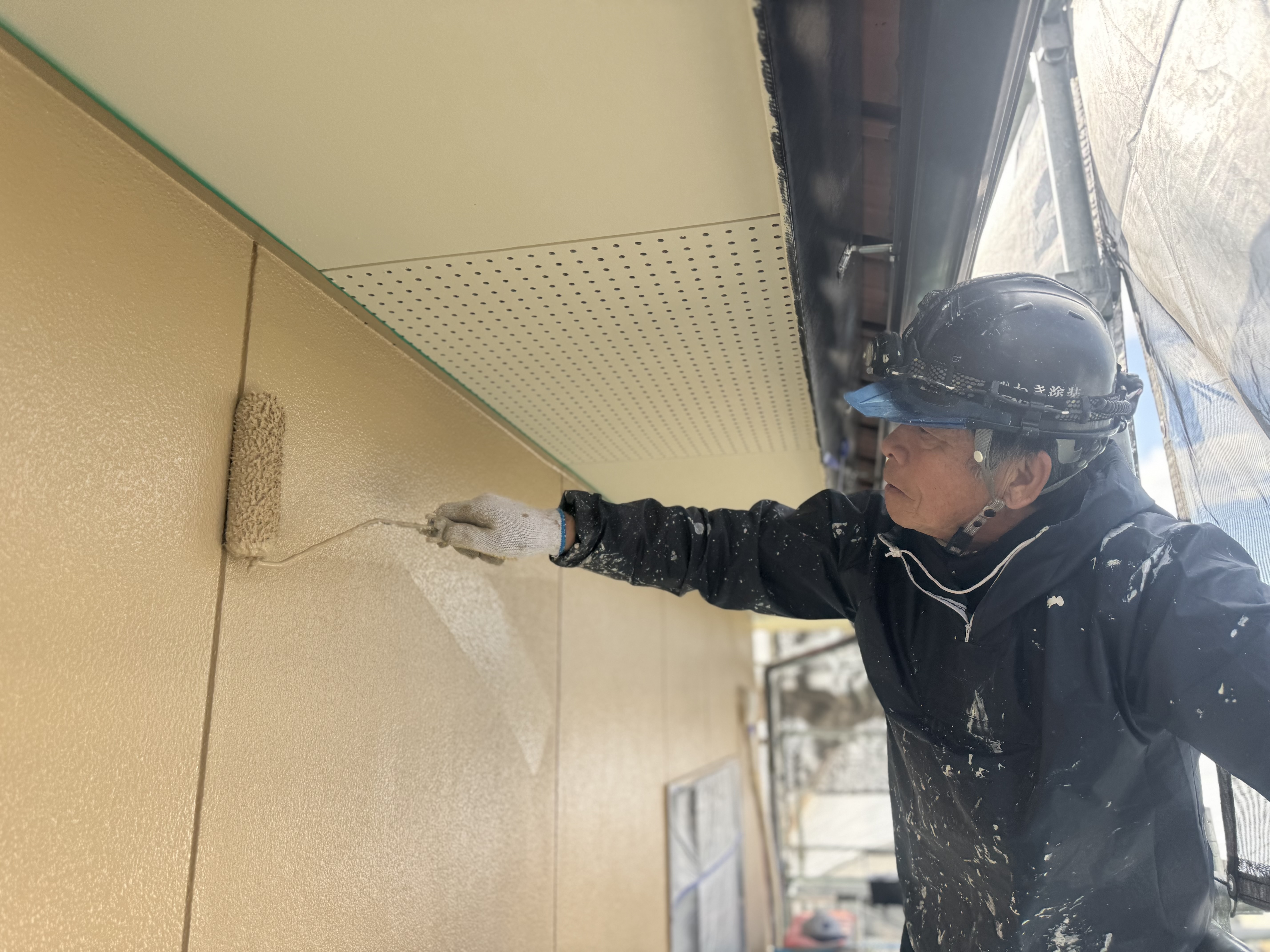今日は、熊本市北区にて、外壁塗装の 中塗り・上塗り作業 を行いました。