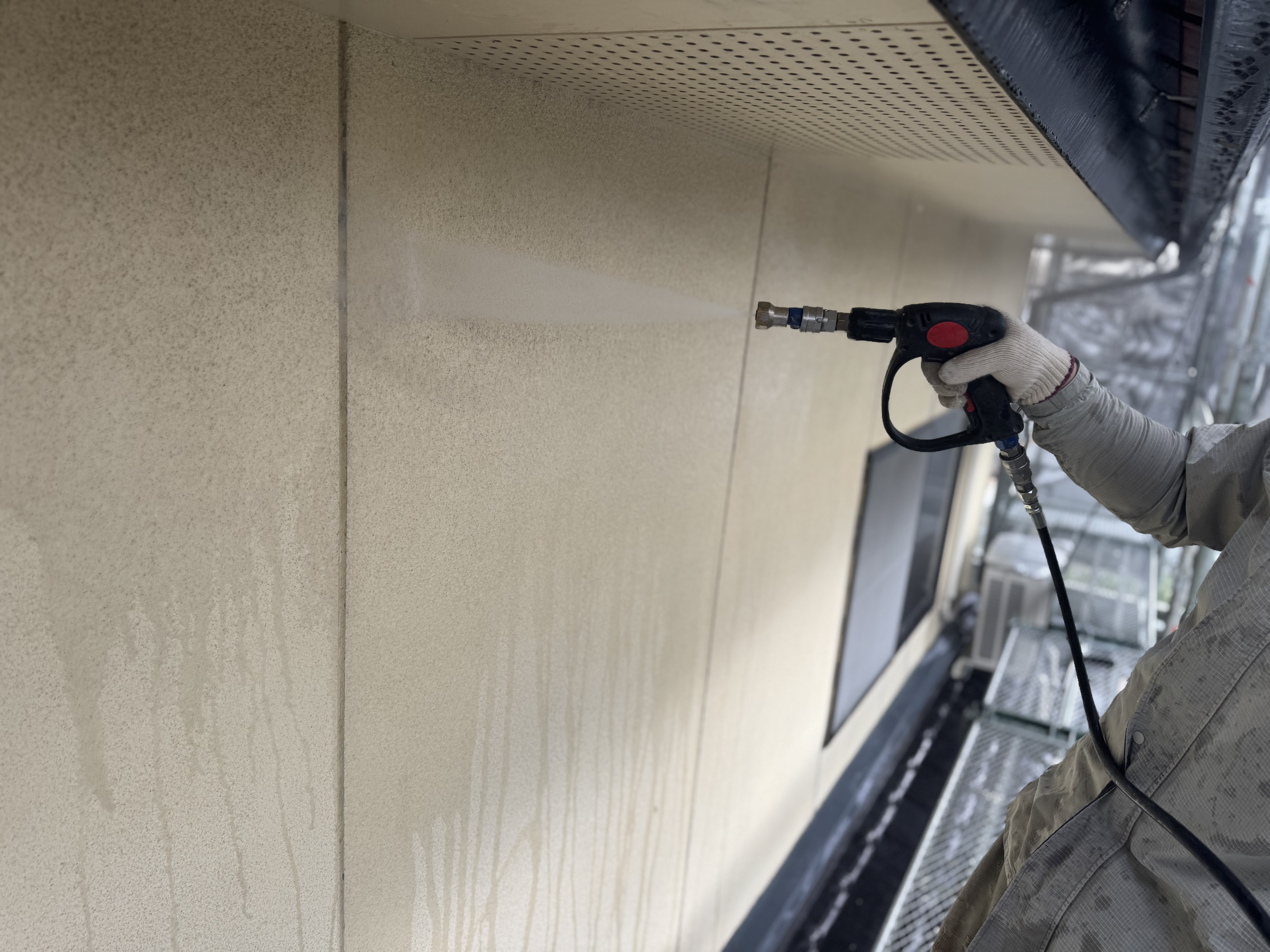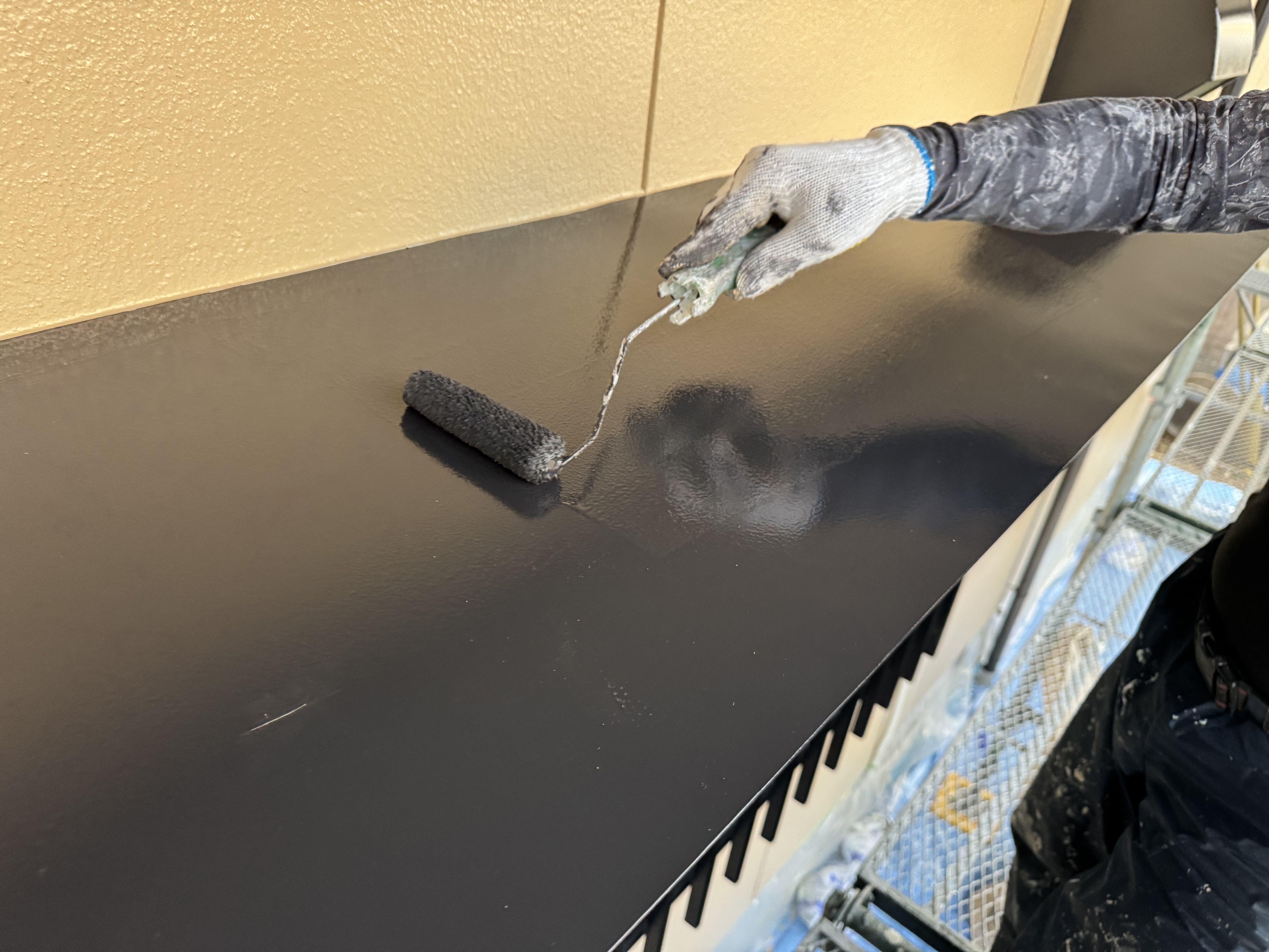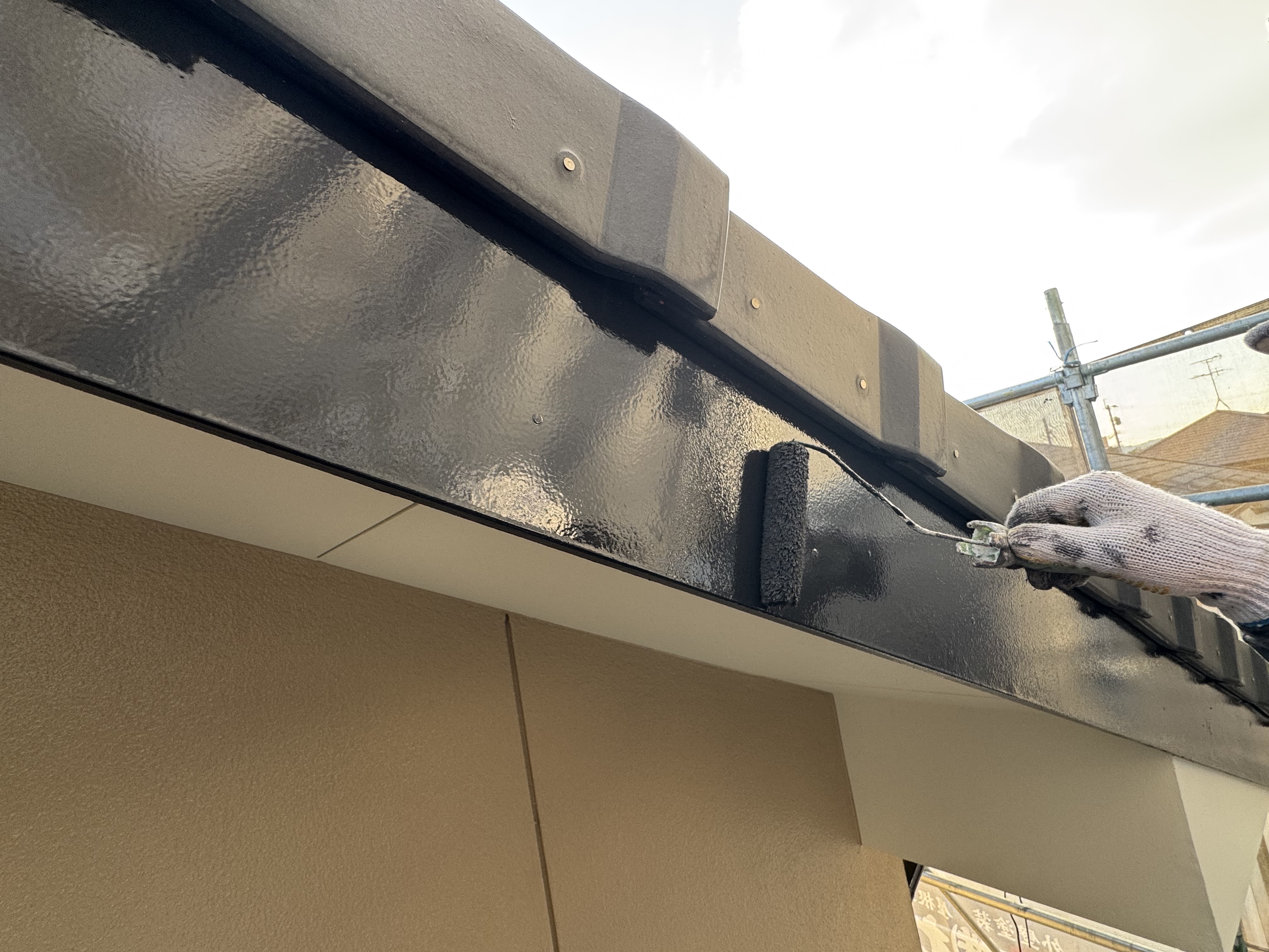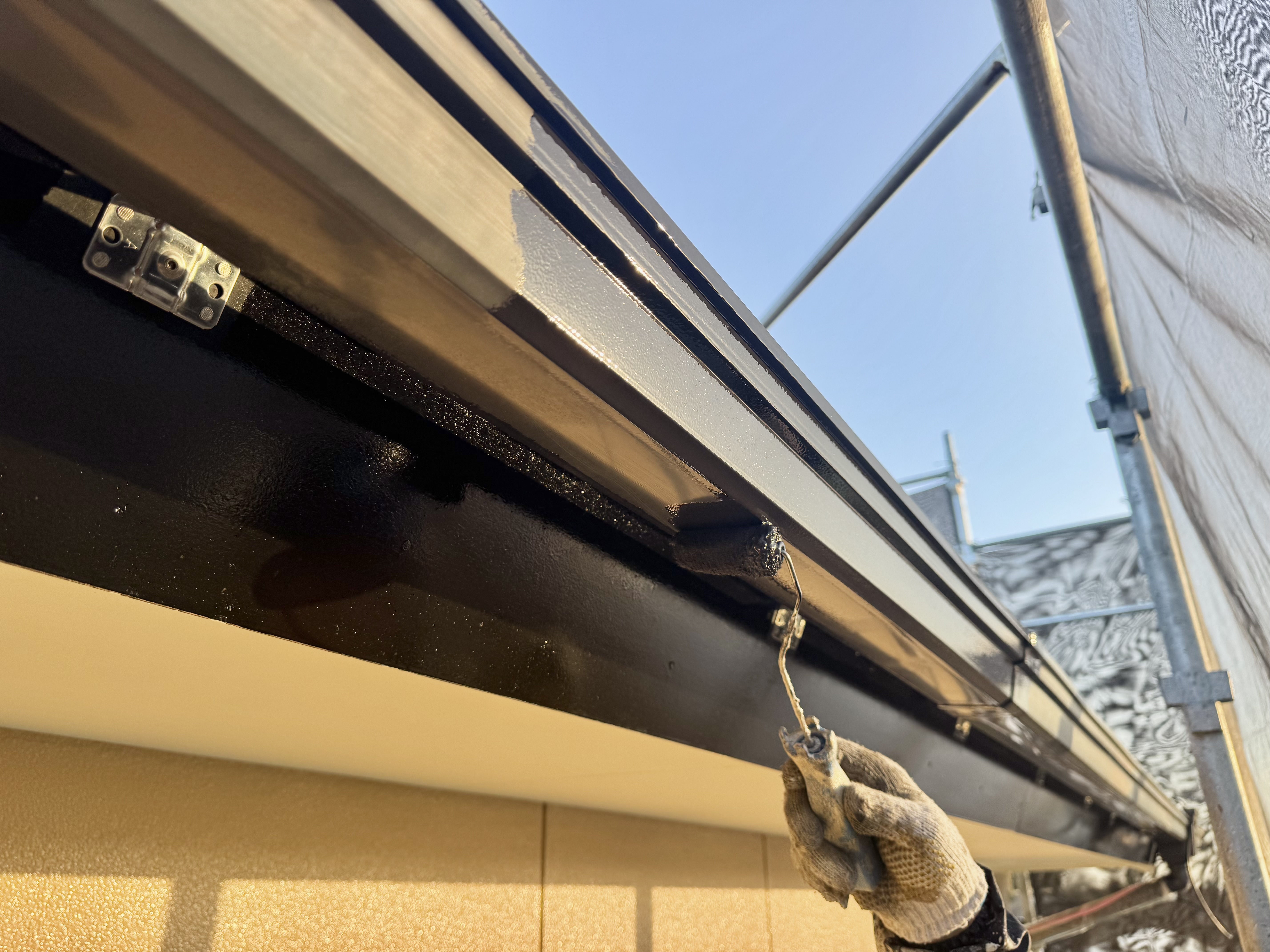 付帯部も隅々まで丁寧に塗っていきます。