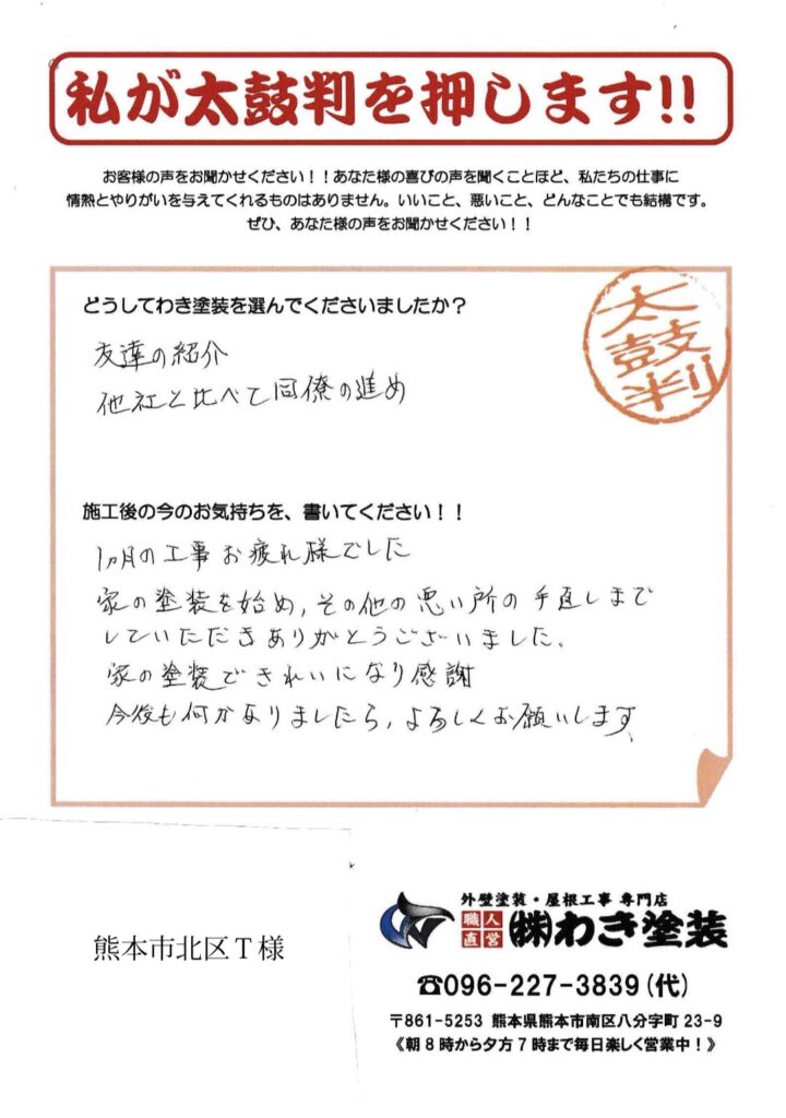 | 施工場所 | 熊本市北区T様邸 |